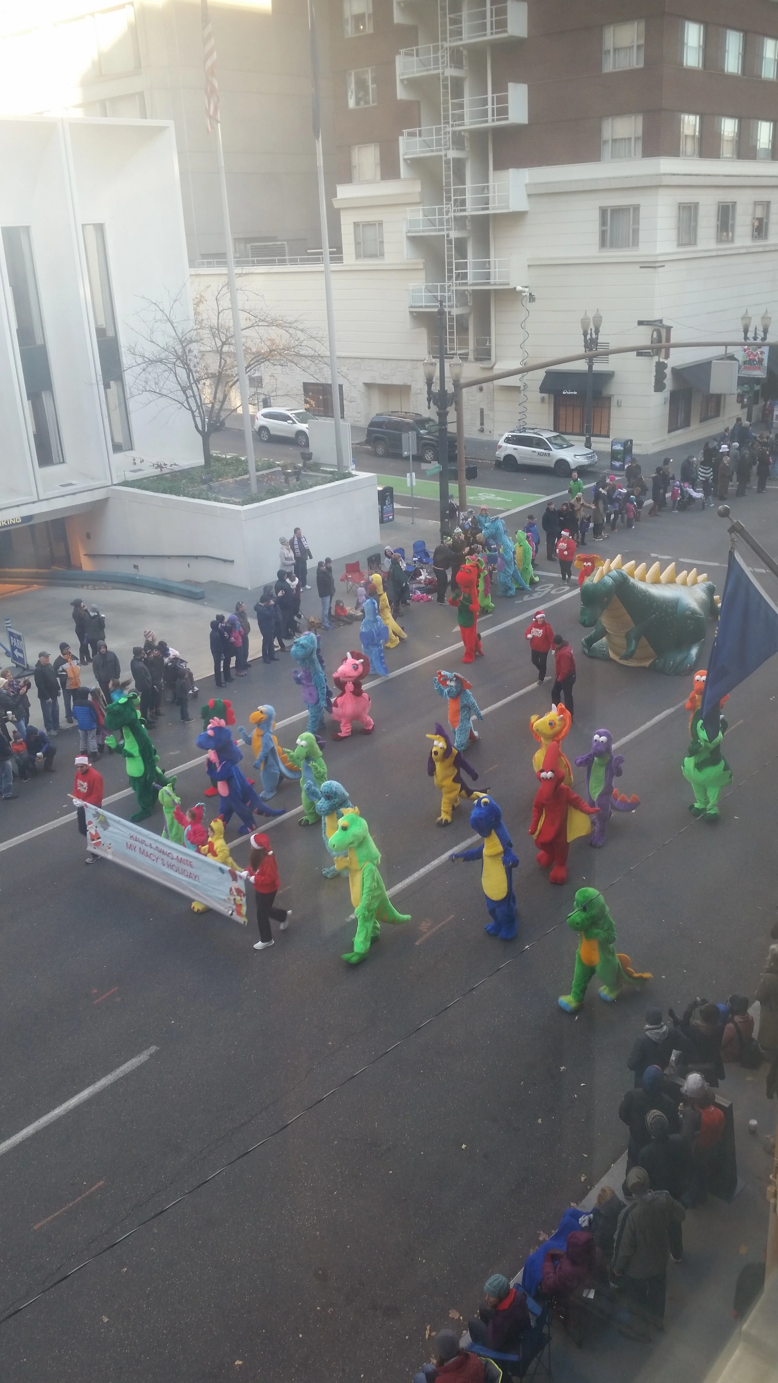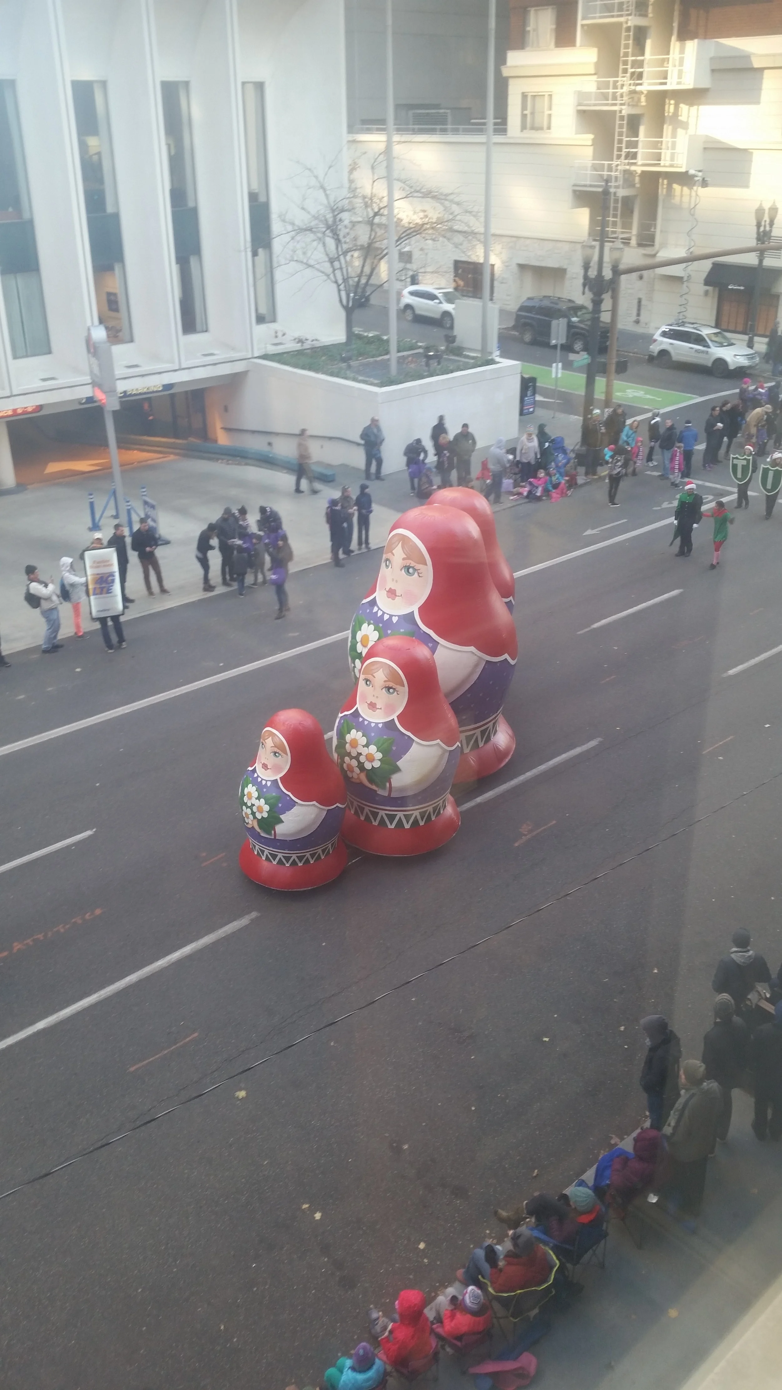 We celebrated Thanksgiving at the Hotel Lucia, on Broadway. It's a nice boutique hotel. And this morning was the Macy's parade, right down the street in front of the hotel. We could see it from our room windows.
