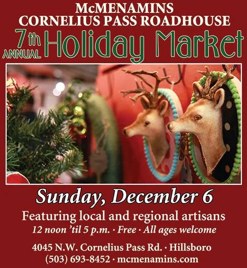 Our last event of the season will be next weekend at McMenamins Cornelius Pass Holiday Market, Sunday, December 6th. If you can't make it to downtown Hillsboro tomorrow, come out to Cornelius Pass next weekend and say hi!!